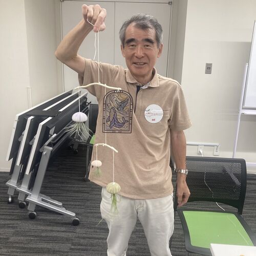 今日は、i-ze(いーぜ)の花育ワークショップでした。 今日は珍しく少人数、申込者数が9名とこじんまりとした会になりました。 今日は「エアープランツとシーウーチンでクラゲオブジェを作ろう」です。 エアープランツの花育ワークショップは、過去にもあり…